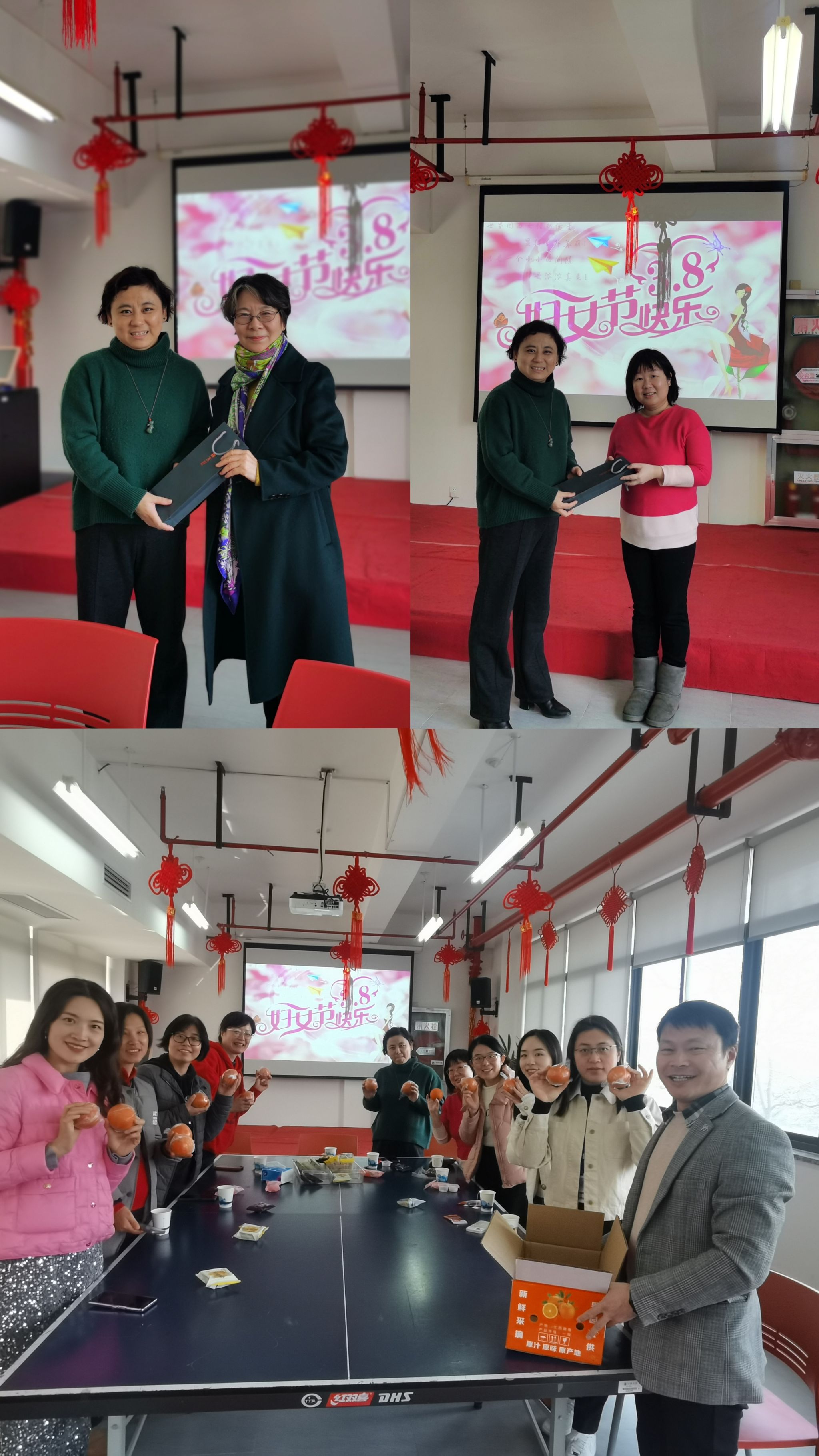 “三八”妇女节是一个既温馨又幸福的节日,它更是一个关注女性权益、展现对女性尊重与关爱的重要时刻。2024年春季学期开学第一天恰逢“三八”妇女节这个美好的日子,同时正值两会召开,学院领导班子在活动当天走访慰问了在岗女教师们。学院工会、妇委在教工之家精心准备了茶水、点心和礼物,开展“庆三八、话两会”女教师下午茶活动。红足1一世足球官网入口党委书记陆甦颖,红足1一世足球官网入口党委副书记、副院长丁佳蒙,红足1一世足球官网入口副院长杨长云出席本次活动。学院领导为全体女教师送上节日的美好祝福,陆书记为大家赠送了精美的节日礼物,杨长云副院长带来了老家香甜的脐橙供大家品尝。
