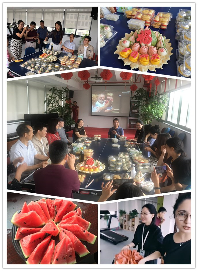 在欢快的氛围中,寿星们许下美好愿望,大家分享美味的寿桃、饺子,香甜的点心和西瓜。大家边吃边聊,互相交流,共叙友情。生日会现场轻松而温馨,老师们度过了一个开心快乐、其乐融融的集体生日会。