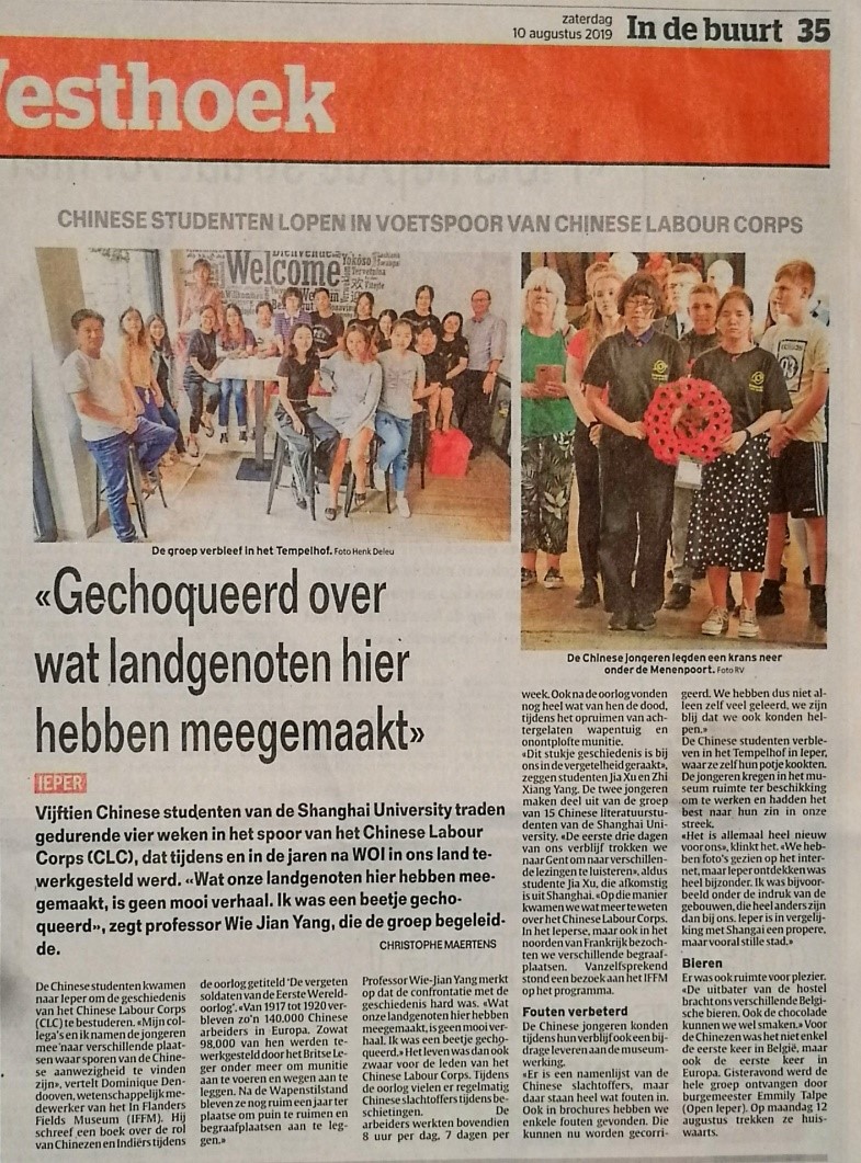 8月9日,伊珀尔市长Emmily Talpe亲自出席暑期项目结业典礼并为调研团队成员颁发结业证书。一战华工寻踪调研活动在弗兰德斯地区引起广泛关注,当地电视台和报纸分别采访了这些来自东方的年轻的文化使者,成为当地重要新闻,产生了积极反响。