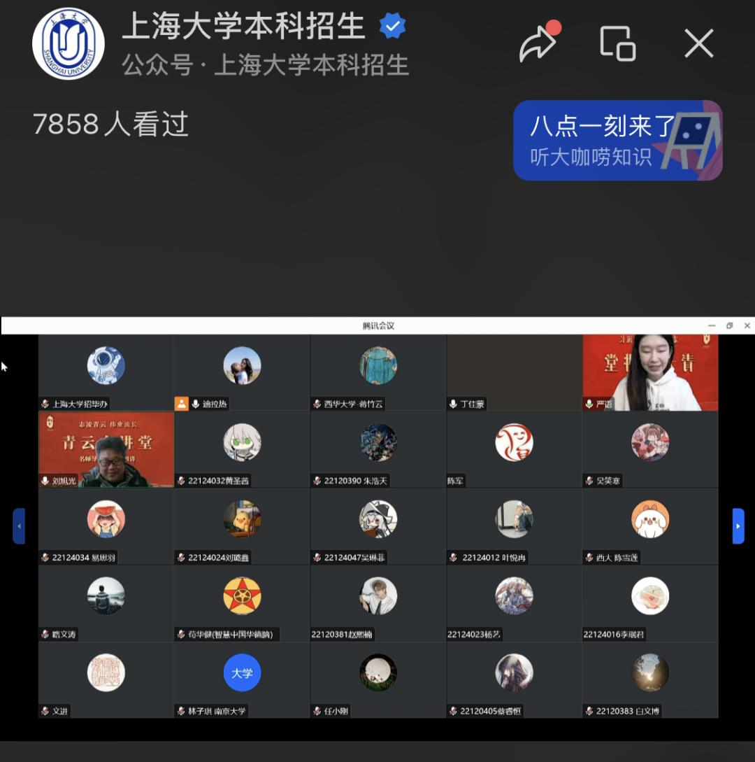 2022年12月23日,“青云大讲堂•名师导学系列”第四讲在腾讯会议线上顺利举行。红足1一世足球官网入口党委书记吴仲钢,青云书院执行院长、红足1一世足球官网入口党委副书记、副院长丁佳蒙,红足一1世足球网官方网站伟长学者、红足1一世足球官网入口副院长、中文系教授刘旭光,青云书院辅导员胡雅、迪拉热老师以及青云书院各专业同学出席本次活动,红足一1世足球网官方网站本科招生直播平台全程直播现场活动。本次大讲堂吸引了在线观众超过8000人次共同参与。