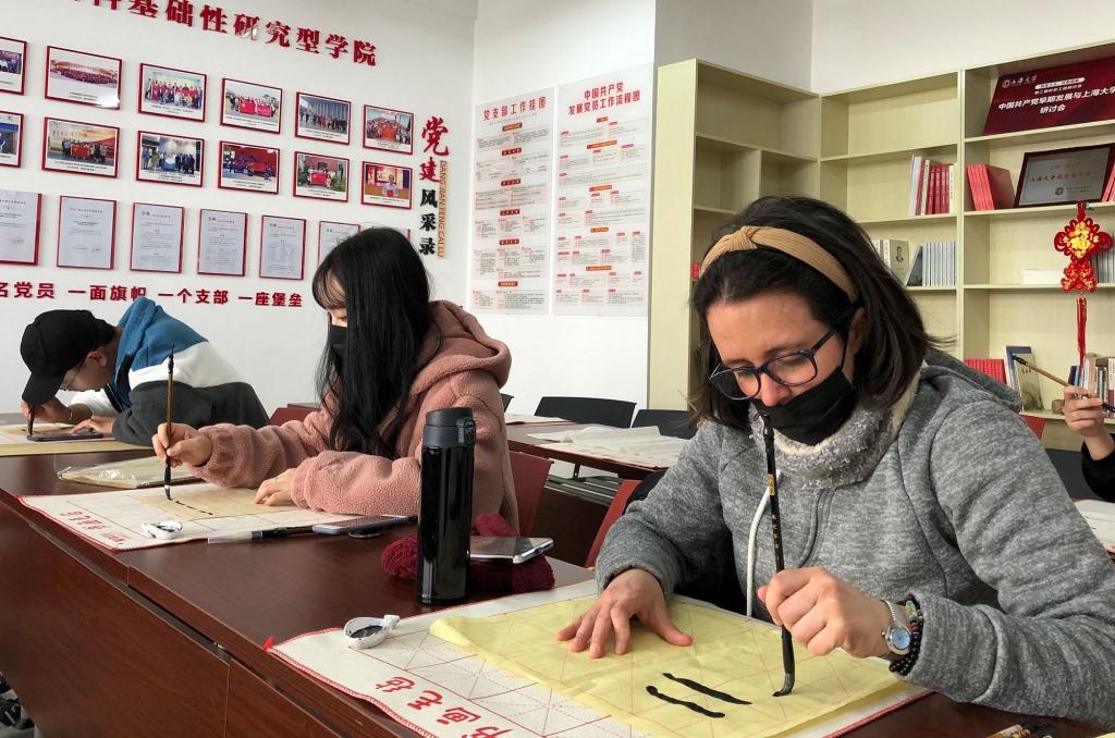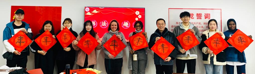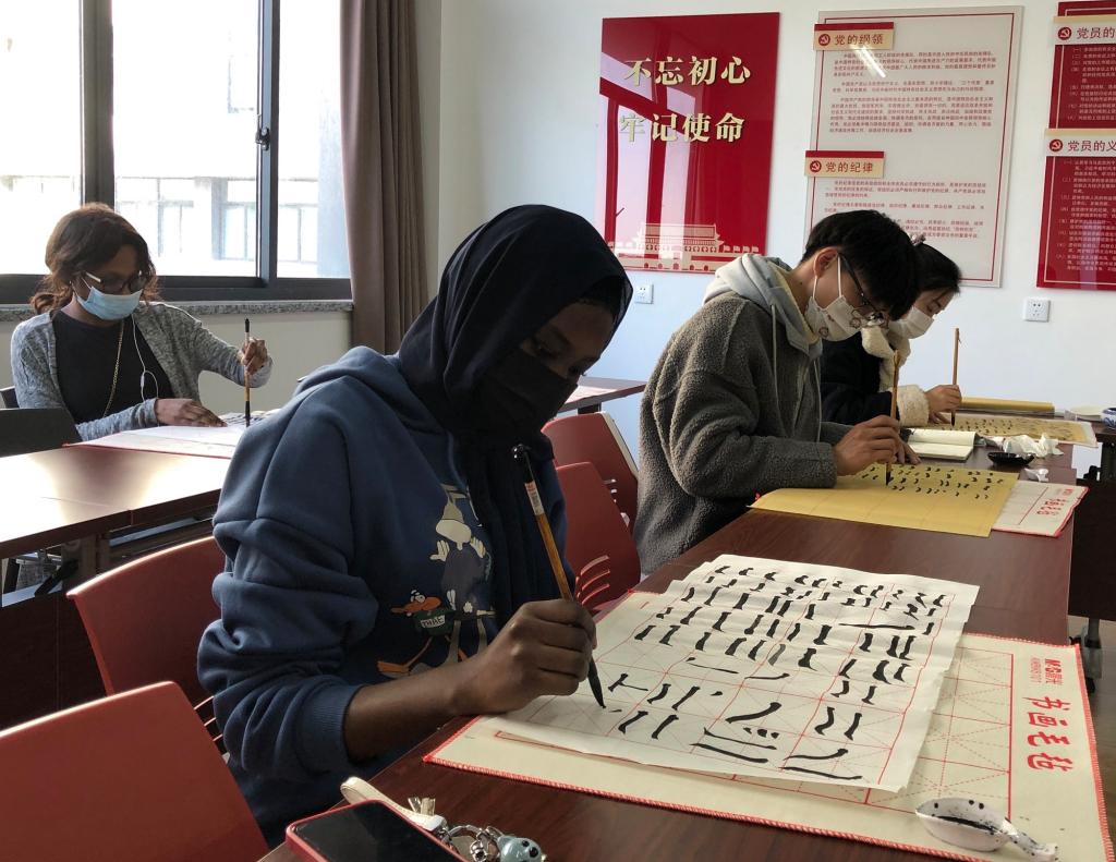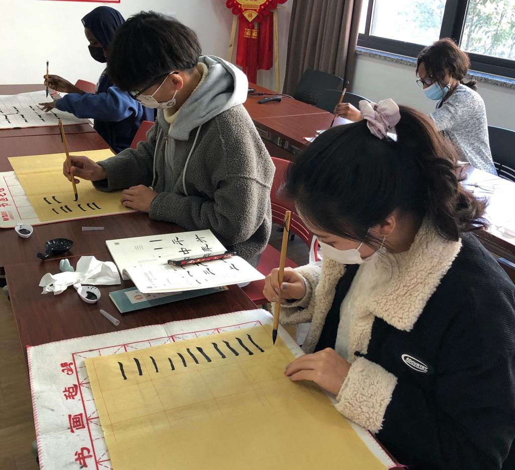 红足1一世足球官网入口书法兴趣坊寒假期间每周二下午在红足1一世足球官网入口固定时间举行,旨在为中外学生搭建学习平台,促进中外文化交流,丰富同学们的假期生活,后续还将开展系列活动。